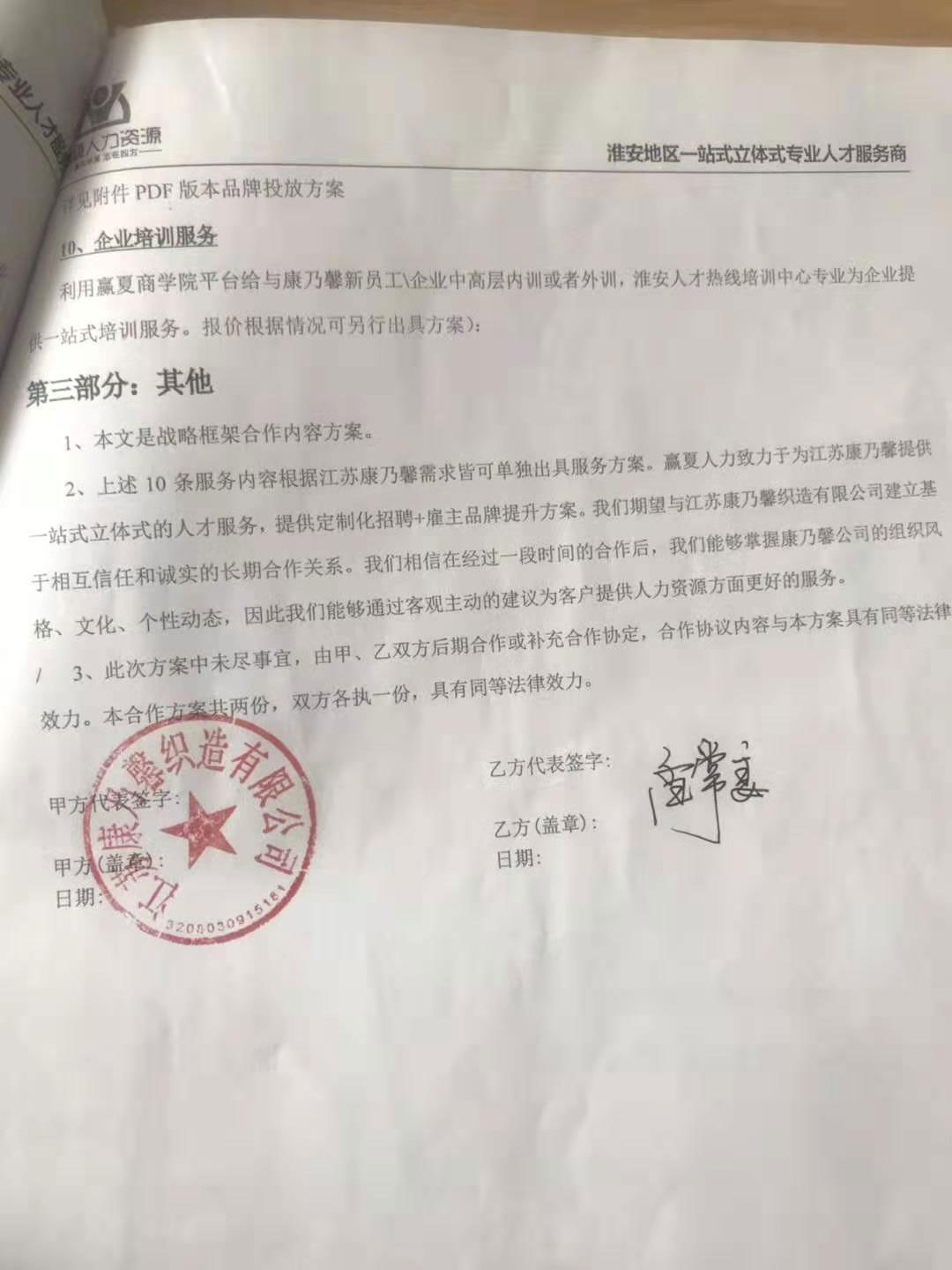 熱烈祝賀!淮安贏夏人力資源有限公司與江蘇康
