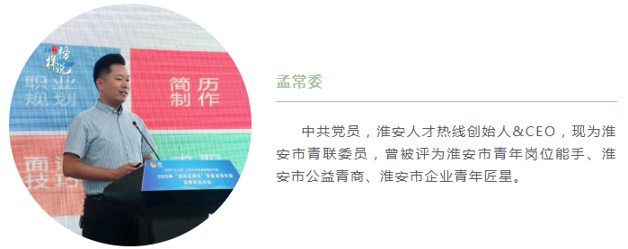 孟常委畢業(yè)于淮安的一所普通專(zhuān)科學(xué)校,當(dāng)年和很多同學(xué)一樣,畢業(yè)后面臨著同樣一個(gè)問(wèn)題——就業(yè)難。他做過(guò)飯店服務(wù)員,當(dāng)過(guò)超市理貨工,在探尋自己職業(yè)方向上費(fèi)盡了心思、吃盡了苦頭。工作的時(shí)候他一直在思索,現(xiàn)在淮安每年那么多畢業(yè)生,畢業(yè)后第一個(gè)要面對(duì)的問(wèn)題就是就業(yè),如何能夠更好地幫助他們解決這一問(wèn)題?于是,孟常委有了創(chuàng)辦人才公司的念想。2012年,孟常委覺(jué)得時(shí)機(jī)成熟,迅速成立了淮安贏夏人才公司,致力于讓更多的人才“未出校門(mén)、不出家門(mén)”就能在淮安找到好工作、擁有好生活。公司創(chuàng)立之初,由于需要到一線拜訪企業(yè)、收集崗位信息,孟常委半年騎壞了2輛自行車(chē),人也瘦了一圈。最終,自己的辛苦換來(lái)了事業(yè)上的甘甜,孟常委的人力資源事業(yè)新局面不斷被打開(kāi),這也更加堅(jiān)定了他要做好淮安一線“人才紅娘”的決心。
