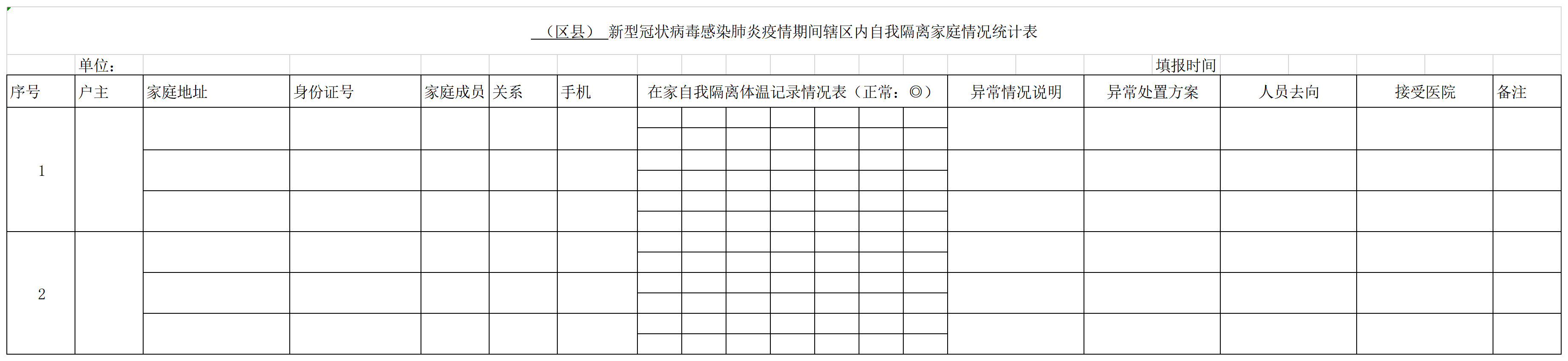 11.肺炎疫情期自我隔離家庭情況統(tǒng)計表