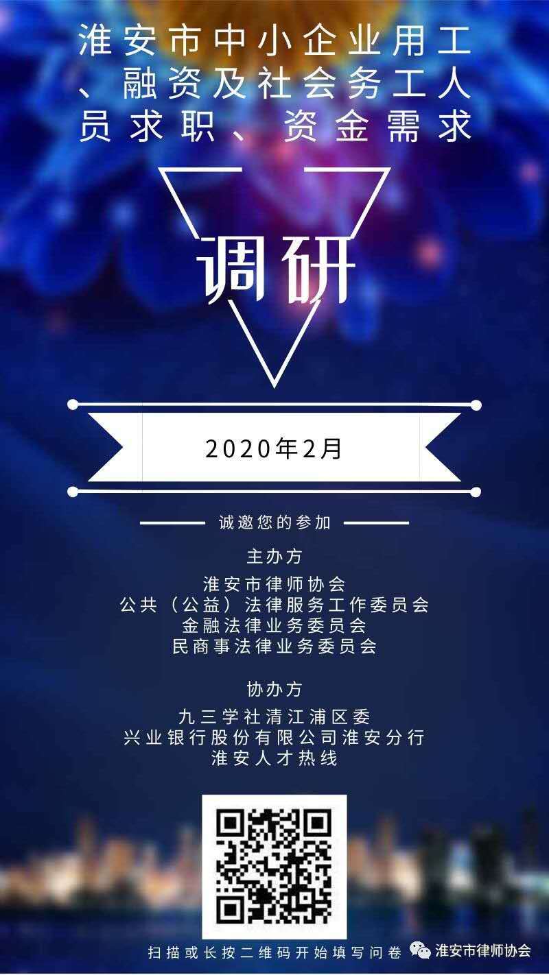 5、本調(diào)研問(wèn)卷由淮安市律師協(xié)會(huì)理事會(huì)公共(公益)法律服務(wù)委員會(huì)、金融法律業(yè)務(wù)委員會(huì)、民商法律業(yè)務(wù)委員會(huì)發(fā)起,九三學(xué)社清江浦區(qū)委、興業(yè)銀行股份有限公司淮安分行、淮安贏夏人力資源有限公司(淮安人才熱線)予以技術(shù)支持共同制作。