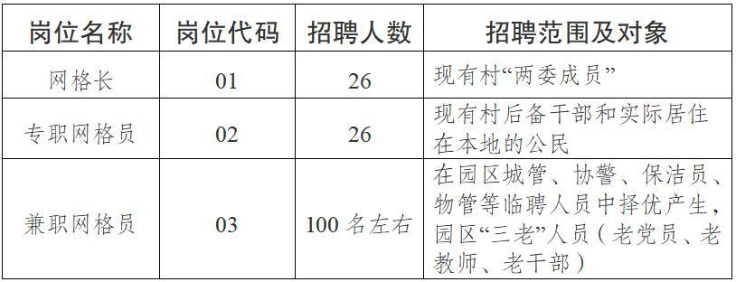 為推進園區(qū)網(wǎng)格化社會治理工作,經(jīng)研究決定,按照“公平、公正、競爭、擇優(yōu)”的原則,擬面向社會公開招聘一批網(wǎng)格長和網(wǎng)格員?,F(xiàn)將有關(guān)事項公告如下: